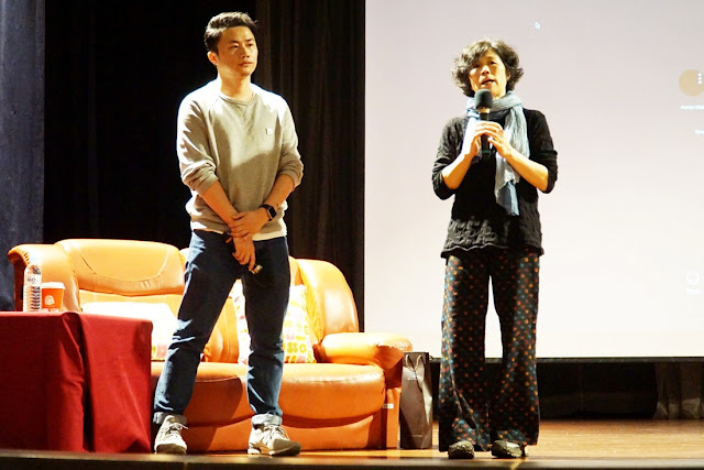 大葉大學視傳系主任李淑貞(右)介紹演講者聶永真(左) |
